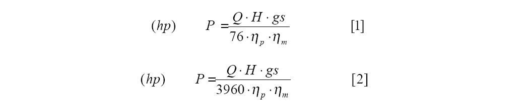 hp= Eficiencia de la bomba | hm= Eficiencia del motor | gs= Gravedad específica