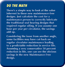Armstrong Fluid Technology has introduced its Maintenance-Free (MF) versions of its S&H circulator line and the seal bearing assemblies (SBA) used to service them. The traditional sleeve bearing designs that are commonly used in this style of circulator require periodic oiling. The new Armstrong maintenance-free S& H Circulators eliminate the need for oiling, saving time and cost for building operators. The new MF S&H line will be offered as an additional option alongside the traditional sleeve bearing designs.