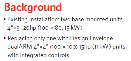 The retrofit project involved removing one of the existing base-mounted 4030 pumps and replacing it with the series 4302 dualArm pump. Operating data, post retrofit, shows that the 4302 dualArm with a Parallel Sensorless Pump Controller is 85% more energy-efficient than the previously installed base mounted pumps.