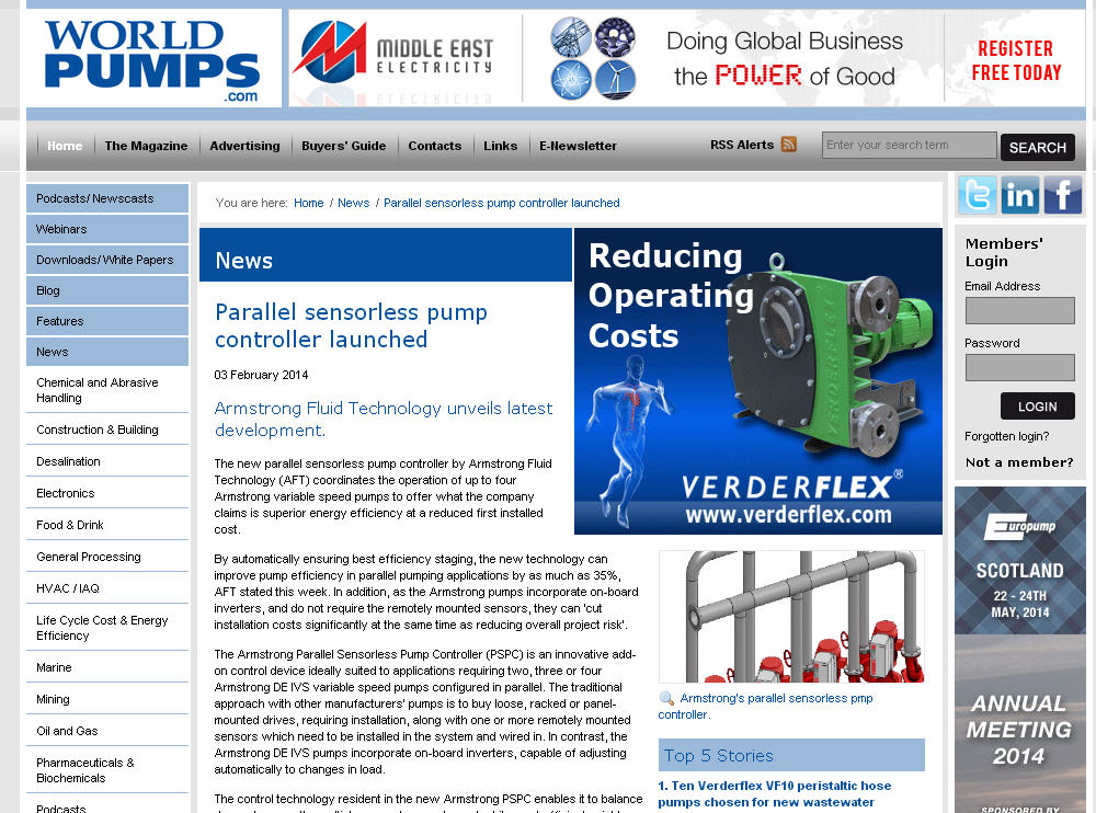 By automatically ensuring best efficiency staging, the new technology can improve pump efficiency in parallel pumping applications by as much as 35%, AFT stated this week. In addition, as the Armstrong pumps incorporate on-board inverters, and do not require the remotely mounted sensors, they can 'cut installation costs significantly at the same time as reducing overall project risk'.